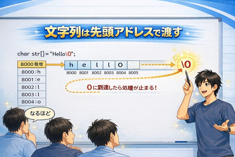 これが、C言語における文字列管理の基本思想です。
