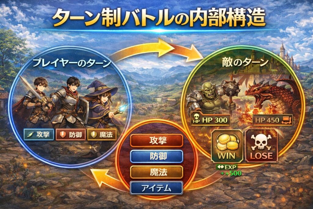 ターン制バトルは、