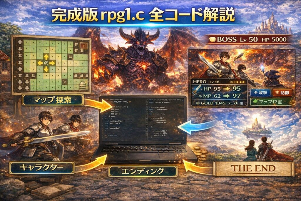 - rpg1.c は「設計 → 実装 → 完結」まで揃った教材