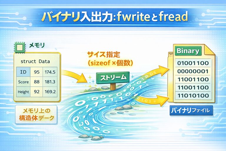C言語入門|バイナリ入出力の基本:fwriteとfread