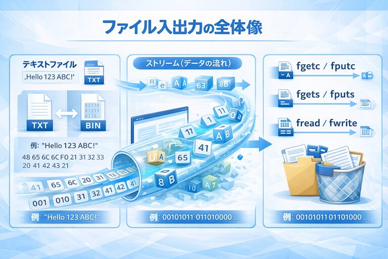 14章を通して、C言語のファイル入出力の基本から応用までを一通り体験しました。