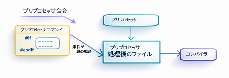 コンパイル前の段階で、ソースコードの一部を有効・無効に切り替える仕組み