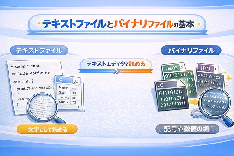 C言語でファイル入出力を学ぶうえでとても役立ちます。