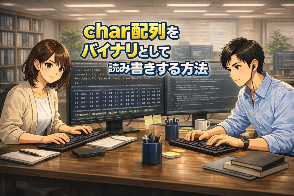 char配列を文字列ではなく「バイナリデータ」として読み書きする方法 を、サンプルプログラムを通して解説します。