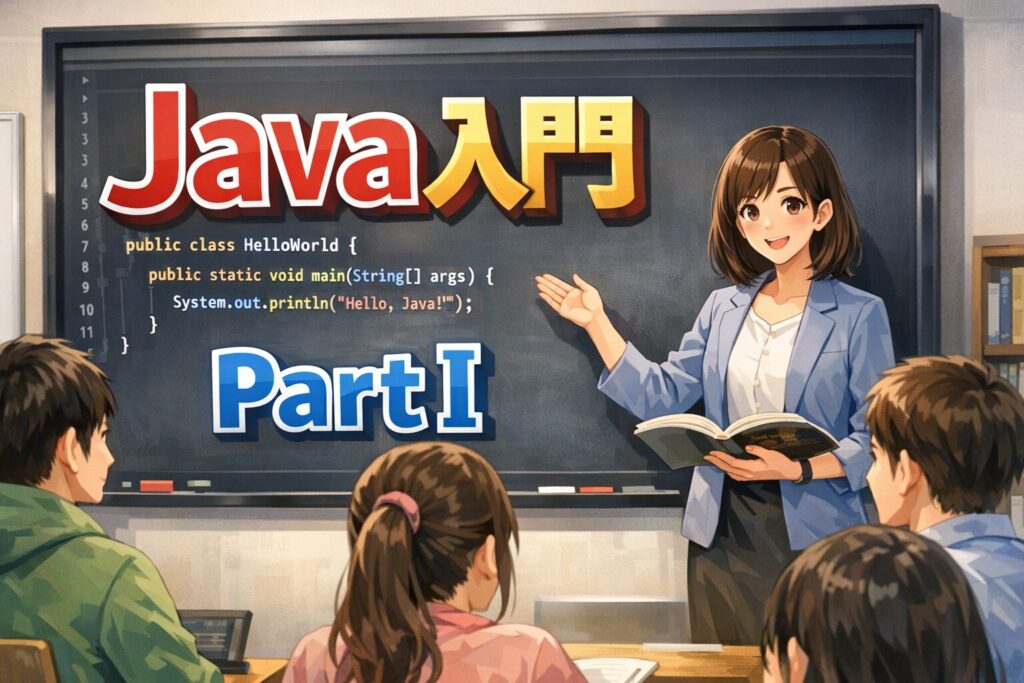 「Java入門 PartⅠ」は、これからプログラミングを始めたい方に向けた、やさしく丁寧な入門教材です。プログラムとは何かという基本からスタートし、実際にコードを書いて動かすまでの流れを、一歩ずつ理解できるように構成されています。
