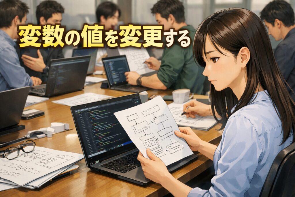 ここでは、変数の値を変更するしくみ、ほかの変数の値を代入する方法、そして代入するときに注意したい型や宣言位置の基本まで、順番にわかりやすく見ていきましょう。