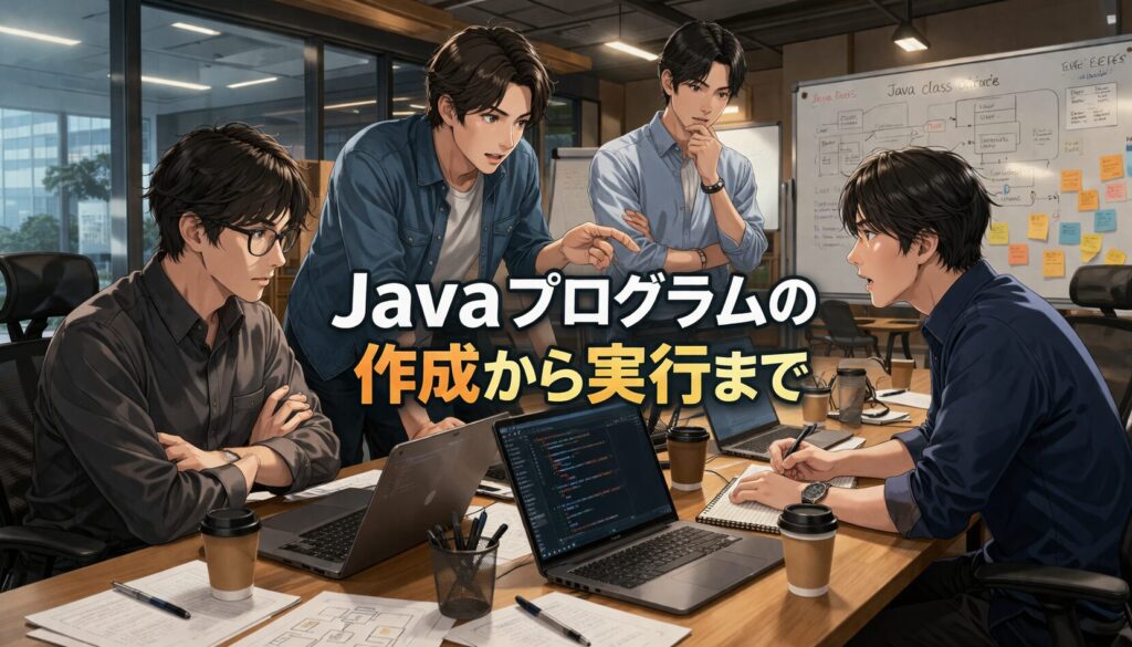 Javaのプログラムは、ただコードを書いただけではそのまま動きません。まずソースファイルを作成し、そのあとコンパイルという作業を行い、最後に実行します。この流れは、Java学習の基本中の基本です。最初は少し手順が多く感じるかもしれませんが、ひとつずつ見ていけば決して難しくありません。