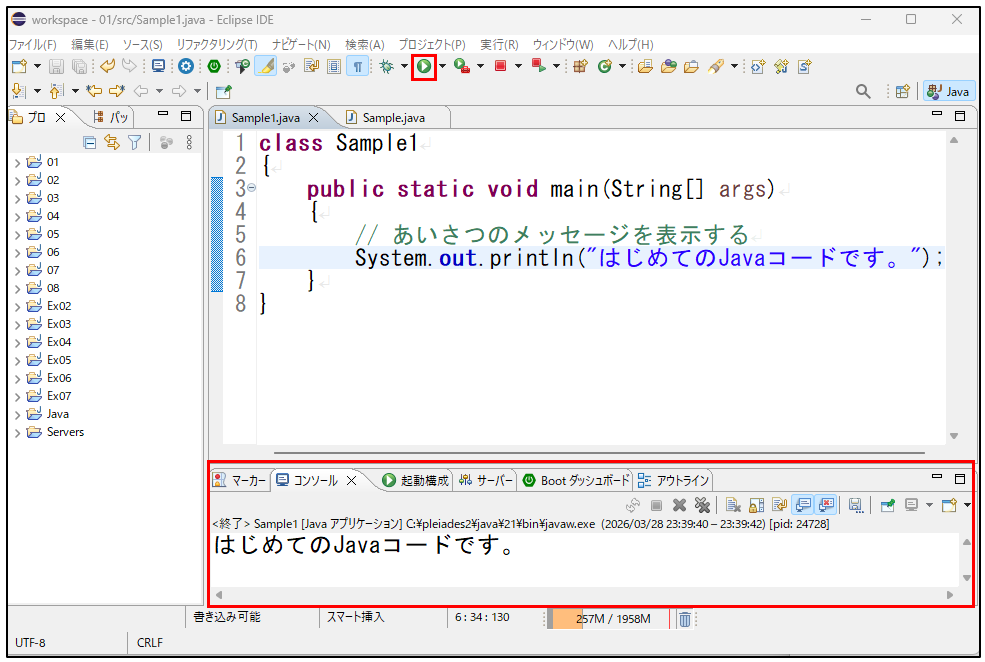 今回の Sample1 はとてもシンプルなプログラムですが、ここには Java学習の基本がしっかり詰まっています。