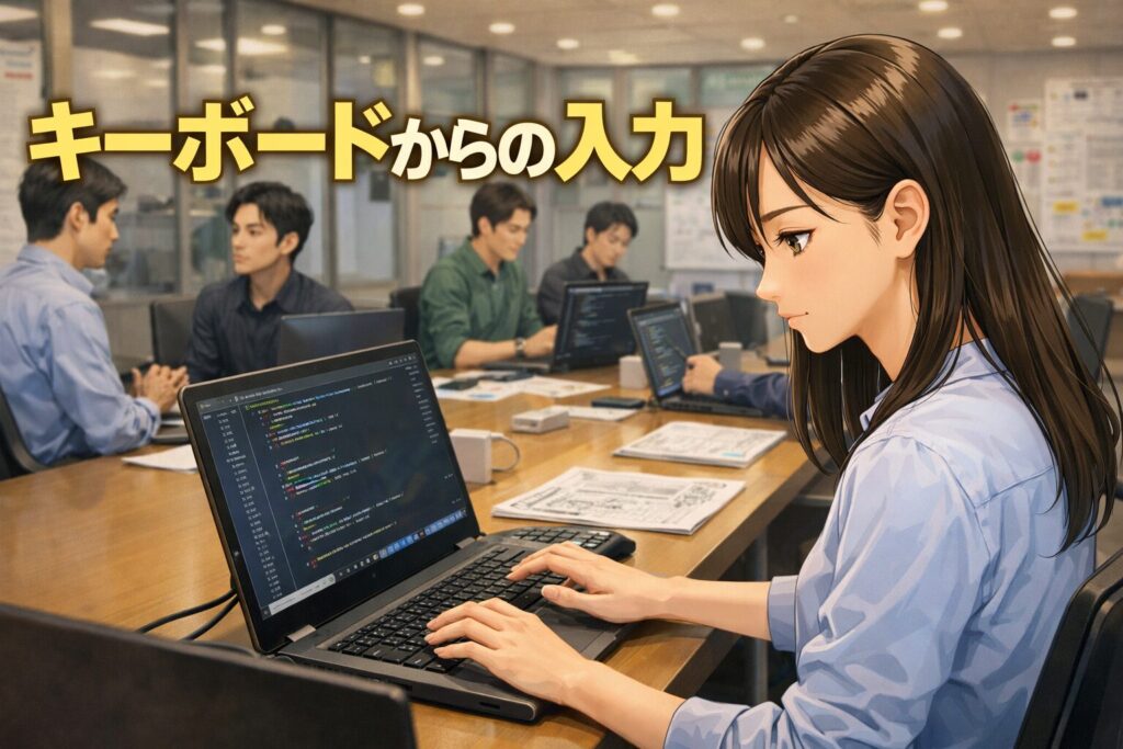 キーボードからの入力とは、プログラムを実行しているときに、ユーザーがその場で文字を入力し、その内容をプログラムの中で受け取ることです。
