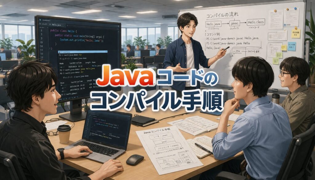 この記事では、Javaコードのコンパイルとは何か、なぜ必要なのか、Windows PowerShell を使ってどのようにコンパイルするのか、コンパイル後に何が作られるのか、そしてエラーが出たときにどこを確認すればよいのかまで、順を追ってやさしく説明していきます。はじめての人でも流れがしっかりつかめるように、基本からていねいに見ていきましょう。