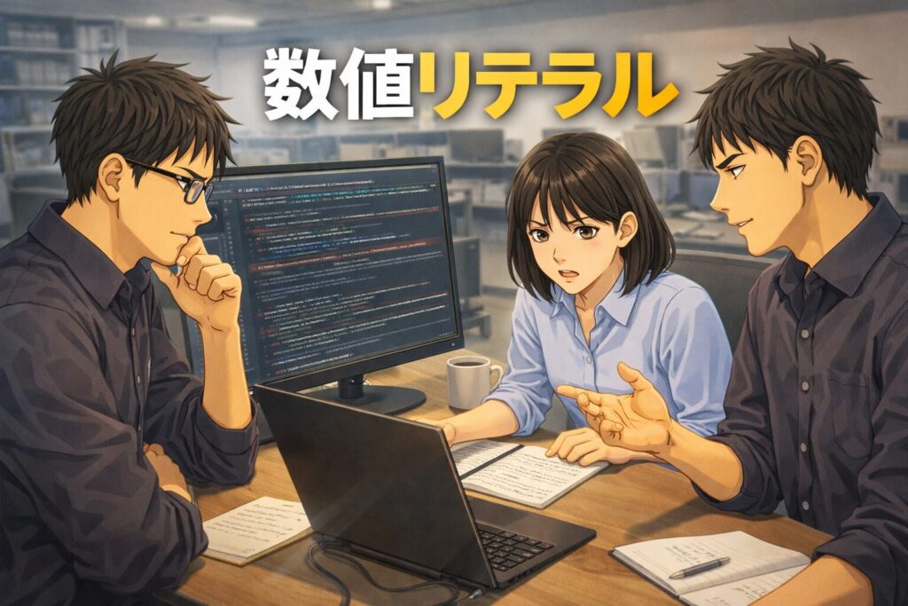 ここでは、数値リテラルとは何か、整数リテラルと浮動小数点数リテラルの違い、10進数以外の表記方法、そして 2進数・8進数・16進数の考え方まで、やさしく丁寧に見ていきましょう。