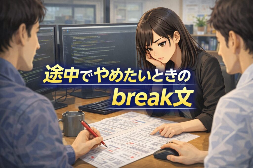 ここでは、break文の基本の働き、通常のループとの違い、サンプルプログラムの動き、ネストしたループでの注意点まで、やわらかく丁寧に見ていきましょう。break文の使い方がわかると、繰り返し処理をより自然に、そして実用的に書けるようになります。