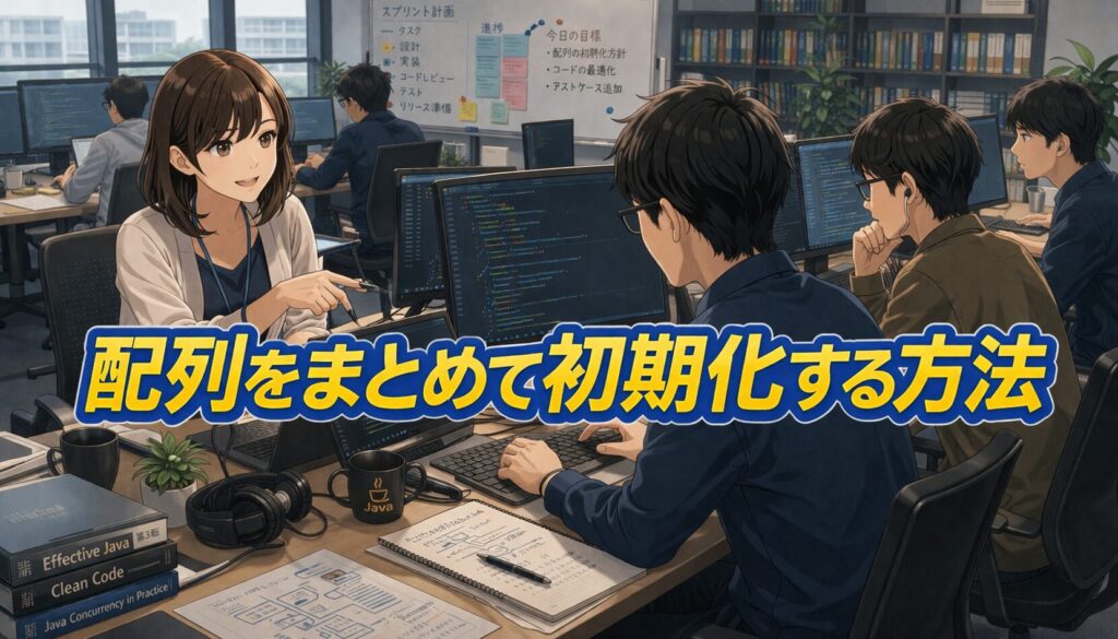 ここでは、配列を簡潔に記述する方法として、配列の宣言と要素の確保を1つにまとめる書き方、そして配列をまとめて初期化する書き方について、やさしくていねいに見ていきます。書き方の違いだけでなく、それぞれがどのような場面で便利なのかも一緒に確認していきましょう。