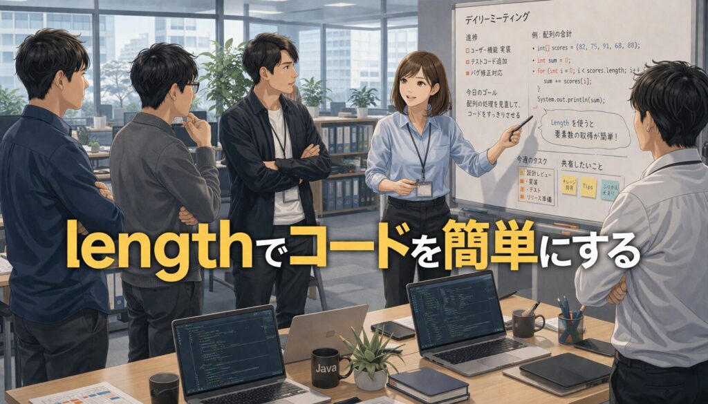 そこで役立つのが、配列の長さを表す length です。これを使えば、その配列が何個の要素を持っているのかをJavaが教えてくれるので、繰り返し回数を自動的に合わせられるようになります。ここでは、配列の長さの調べ方、length の使い方、そしてなぜ length を使うとコードが楽になるのかを、やさしく丁寧に見ていきましょう。