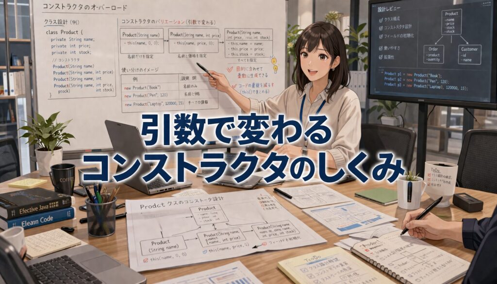 この感覚がつかめると、コンストラクタは単なる初期化処理ではなく、オブジェクトの生まれ方そのものを設計する仕組みとして見えてきます。ここまで理解できると、クラス設計の見え方がまた一段深くなります。