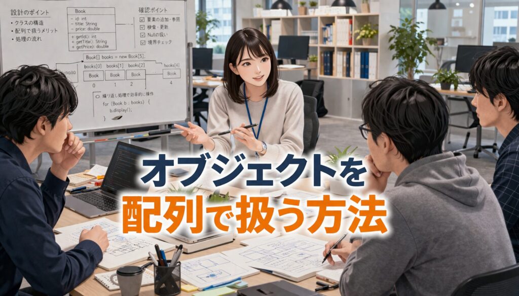 この感覚がつかめると、オブジェクトを1人ずつ扱う段階から、複数のオブジェクトをまとめて扱う段階へ進めるようになります。これはJavaのプログラムを大きくしていくうえで、とても大切な一歩です。