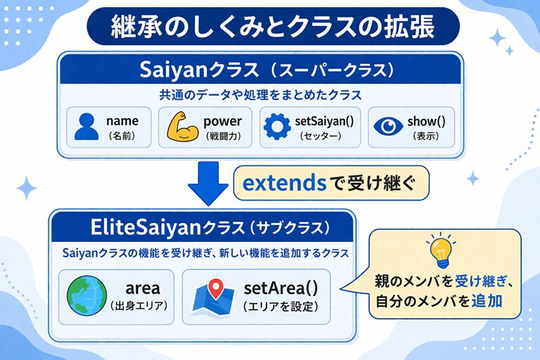 今回は「継承のしくみとクラスの拡張」を、ドラゴンボールの戦士たちに置きかえながら、やさしく丁寧に見ていきます。