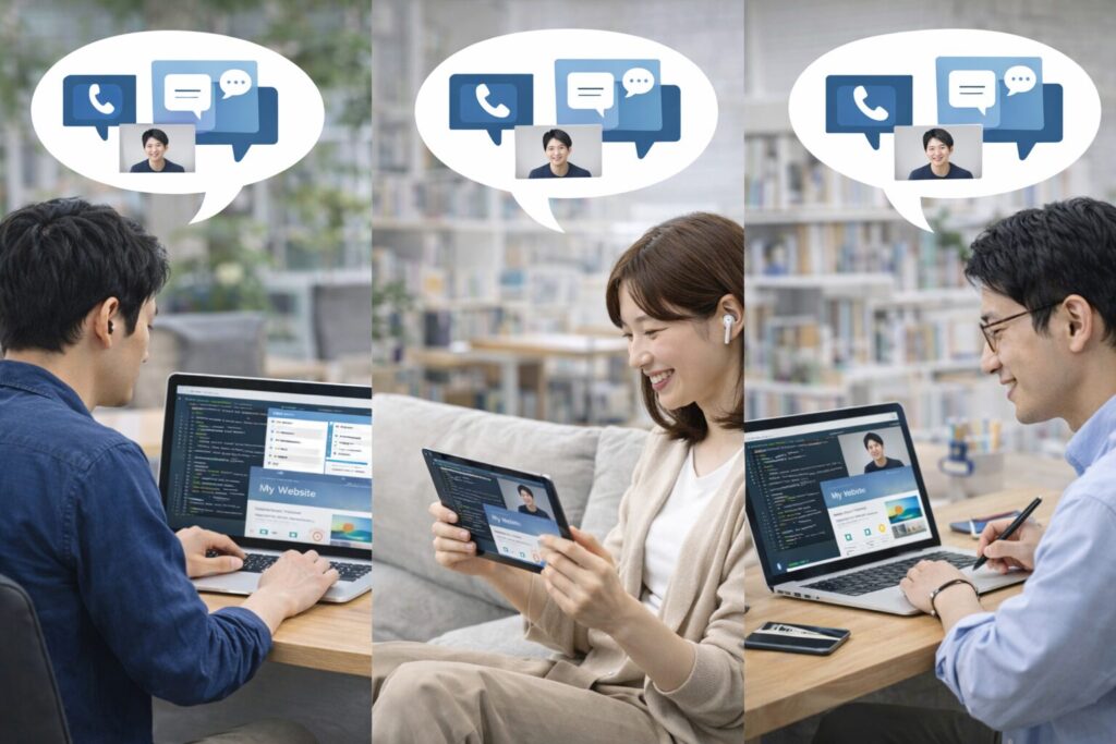 1st stepは、すべての学習がオンラインで完結します。教室に通う必要がないため、好きな場所、好きな時間に学習を進めることができます。仕事や学業と両立しながらでも取り組みやすく、時間に縛られず自分のペースで学べる点は、多くの初心者にとって大きなメリットです。また、チャットや通話を通じて質問ができるため、疑問をそのままにせず、早い段階で解消しながら学習を続けられます。