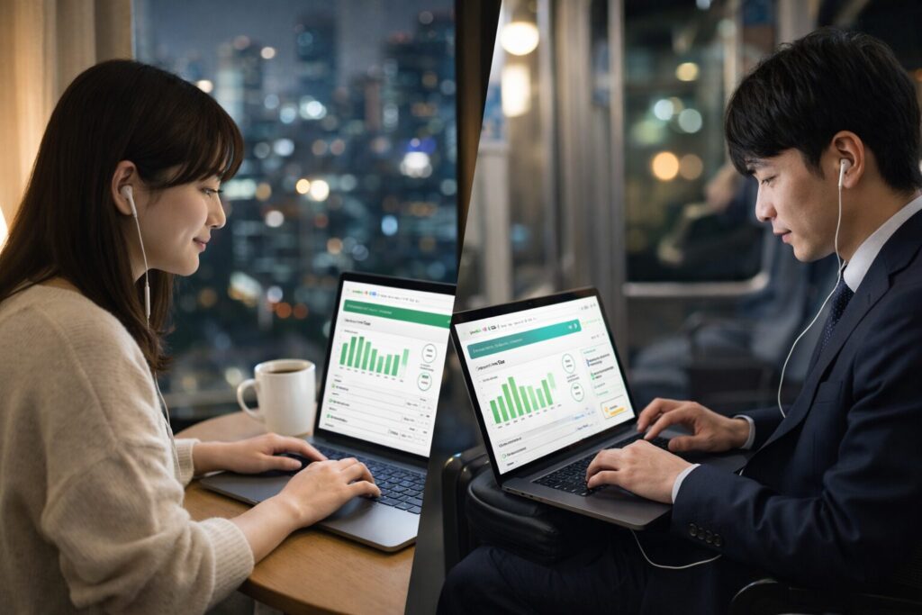 学習はすべてオンラインで完結し、時間や場所に縛られることなく取り組むことができます。