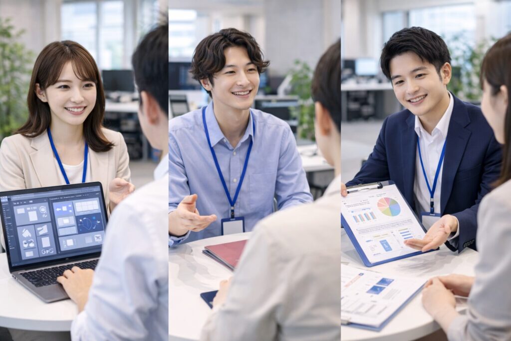 「未経験だから難しいのではないか」と感じる必要はありません。イーチキャリアでは、学歴や職歴に縛られず、やる気や柔軟性、向上心を大切にしたマッチングを行っています。営業や事務、マーケティング、クリエイティブなど、幅広い業界・職種に対応しており、あなたの興味や適性を踏まえたキャリアプランを一緒に描いていきます。